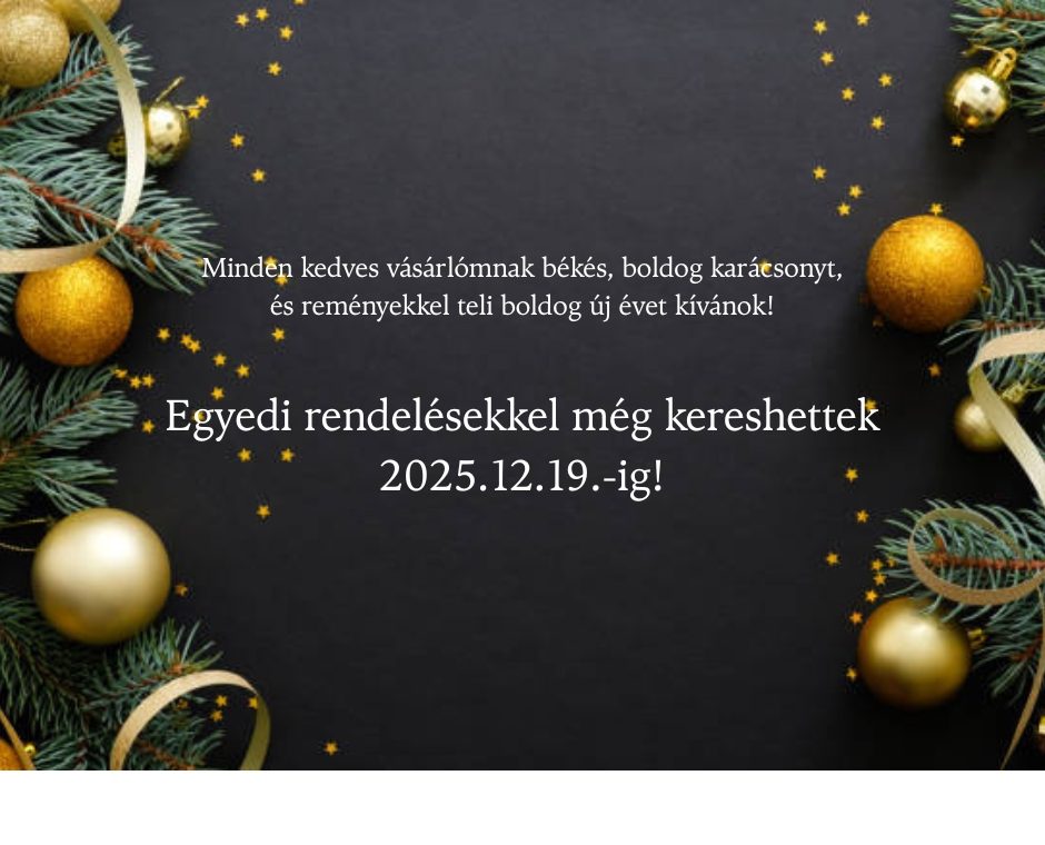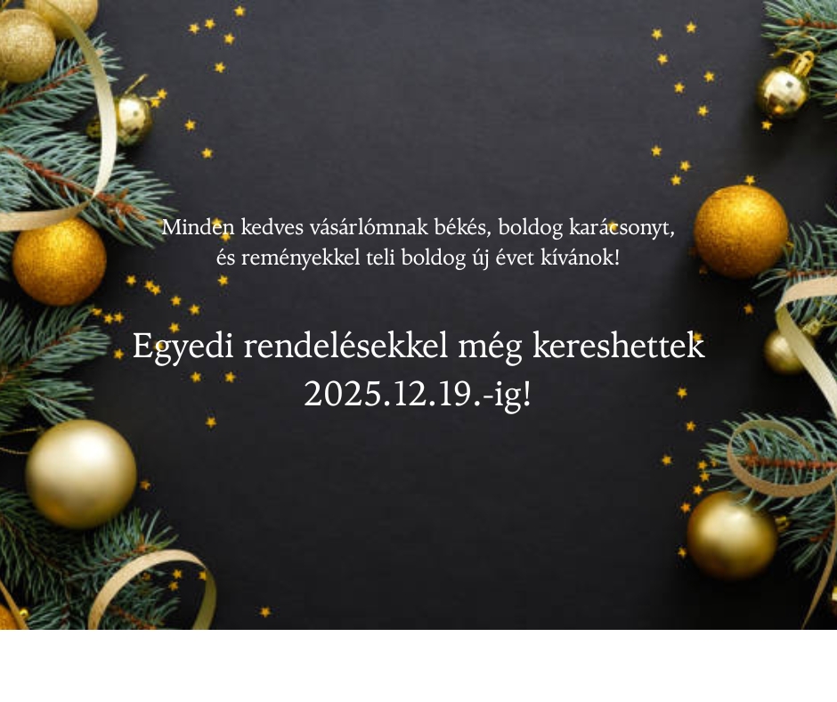 A látványműhelyem 2025.12.15.-től már ZÁRVA lesz, de korlátozott mennyiségben egyedi megrendeléseket még elvállalok, egészen 2025.12.19.-ig! Ha úgy érzed, hogy lemaradtál valamelyik termékemről, és szeretnél egyedileg készíttetni valami kis illatos ajándékot, akkor keress meg üzenetben vagy telefonon, és lehetőségeimhez mérten igyekszem teljesíteni.