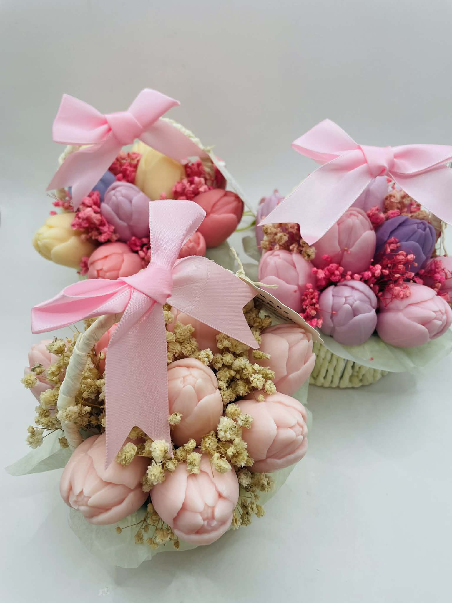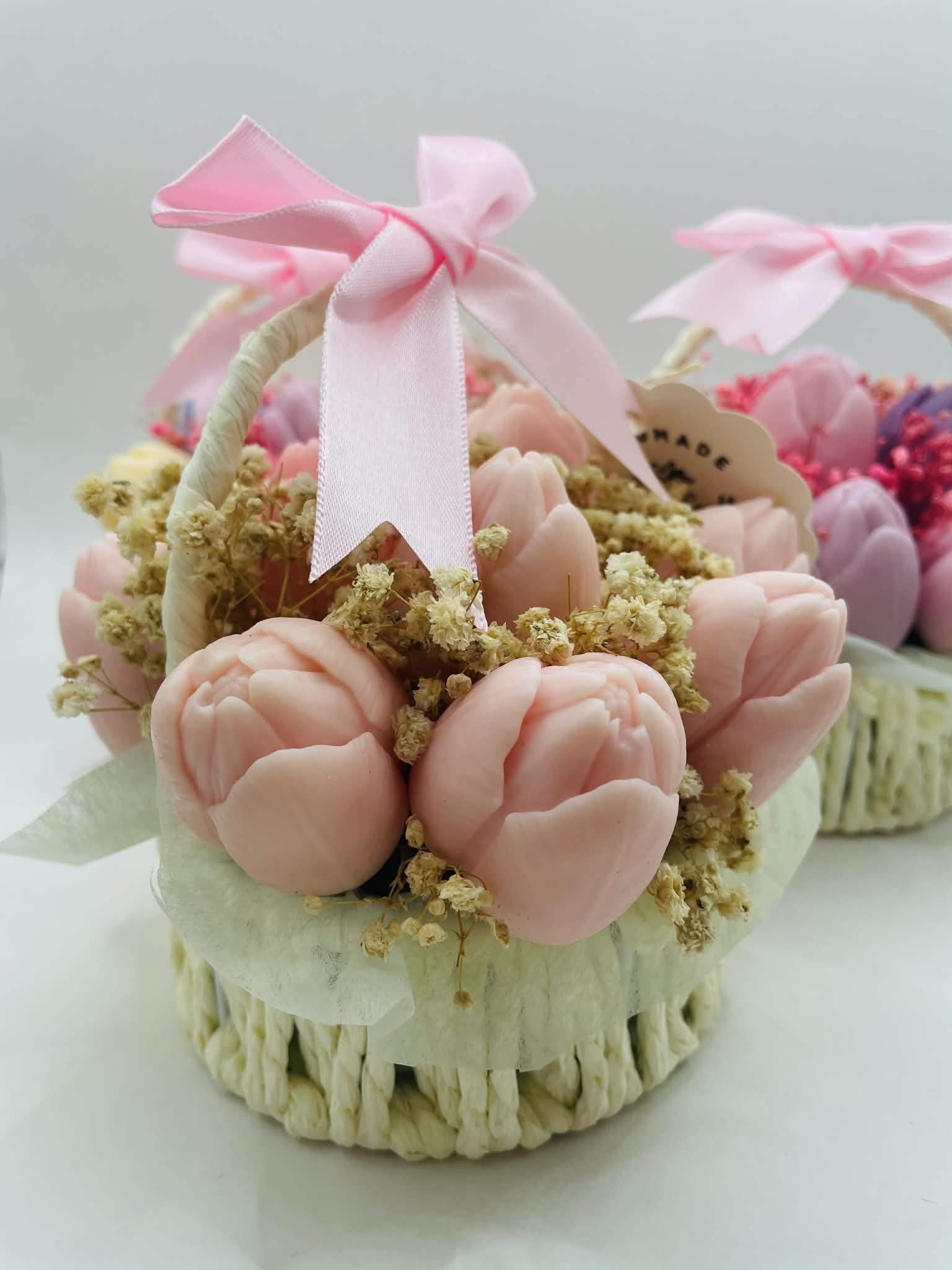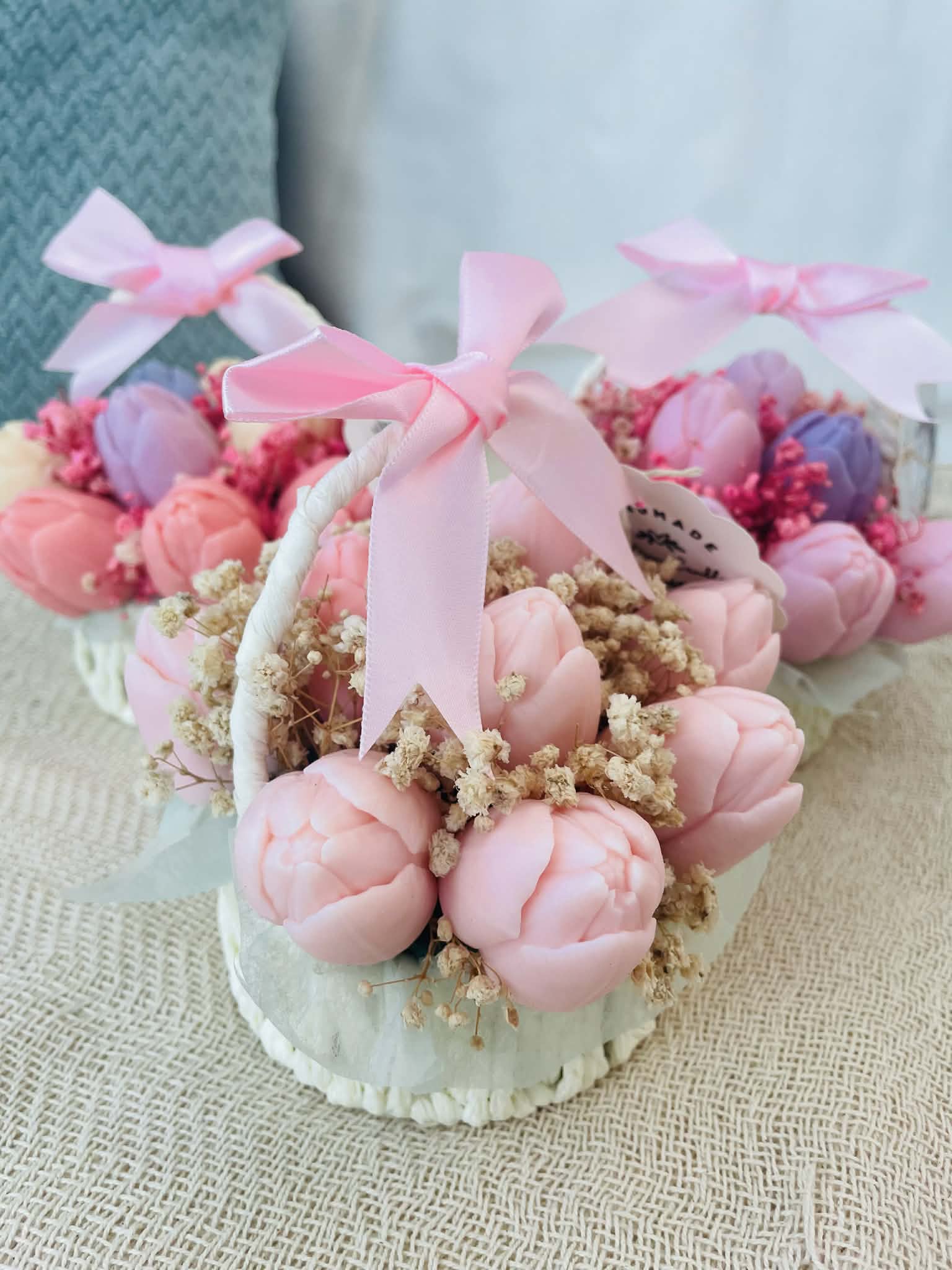 A kosár 10 db tulipán illatviaszt tartalmaz.